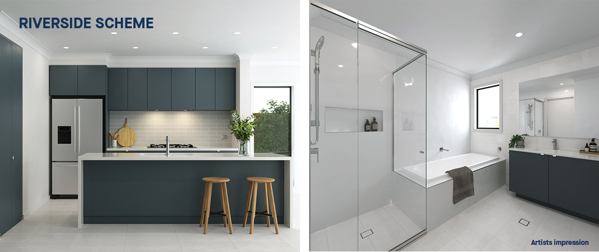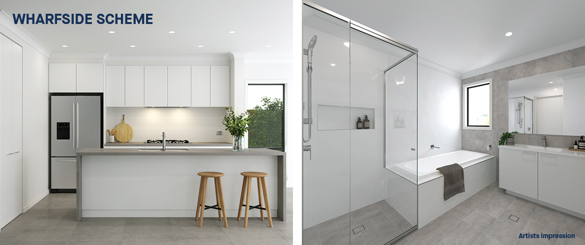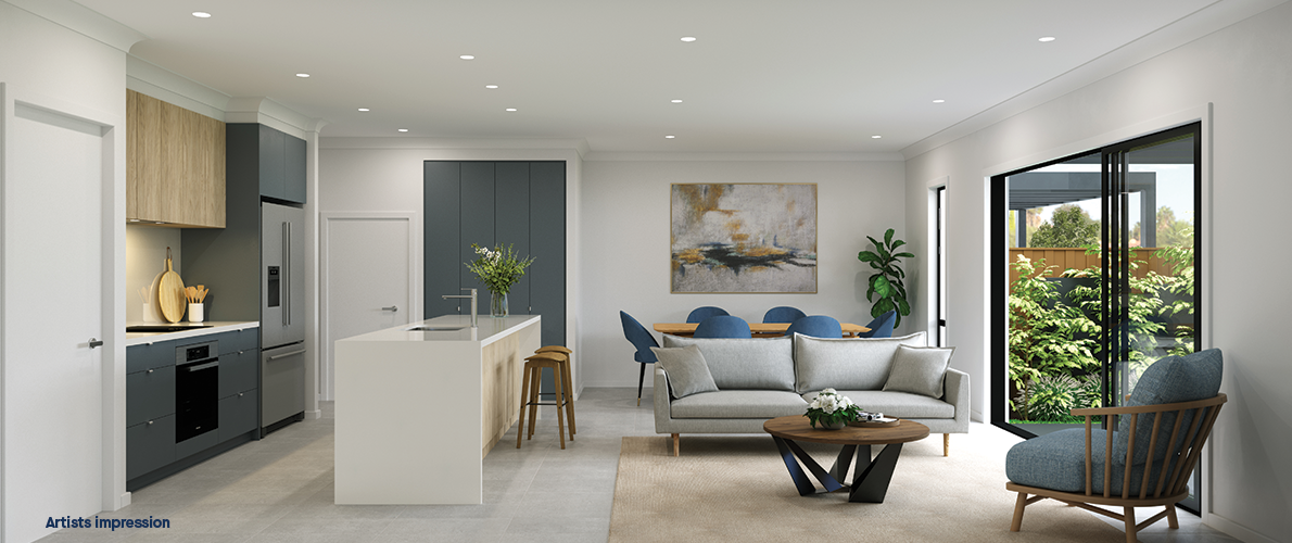 Artist’s impression was produced prior to planning approval, statutory approval and commencement of construction and is subject to change. The information, image and artist’s impression depicting interiors are intended only as a guide and are not to be relied on as a representation of the final product. Furnishings not included. Upgrade options shown.
