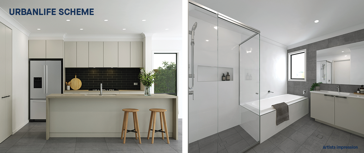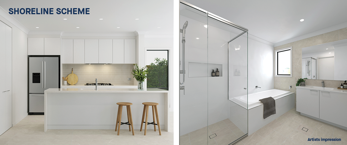 Exterior material and colour palettes have been selected to create a harmonious streetscape while offering abundant variety in design and detail. Specified inclusions, site costs and landscaping are all covered in the price of your home and all you need to worry about is the fun part – choosing an internal colour scheme to suit your taste and personality, and selecting from our range of upgrades. Customers who wish to customise their home interiors are advised to purchase early before construction begins.