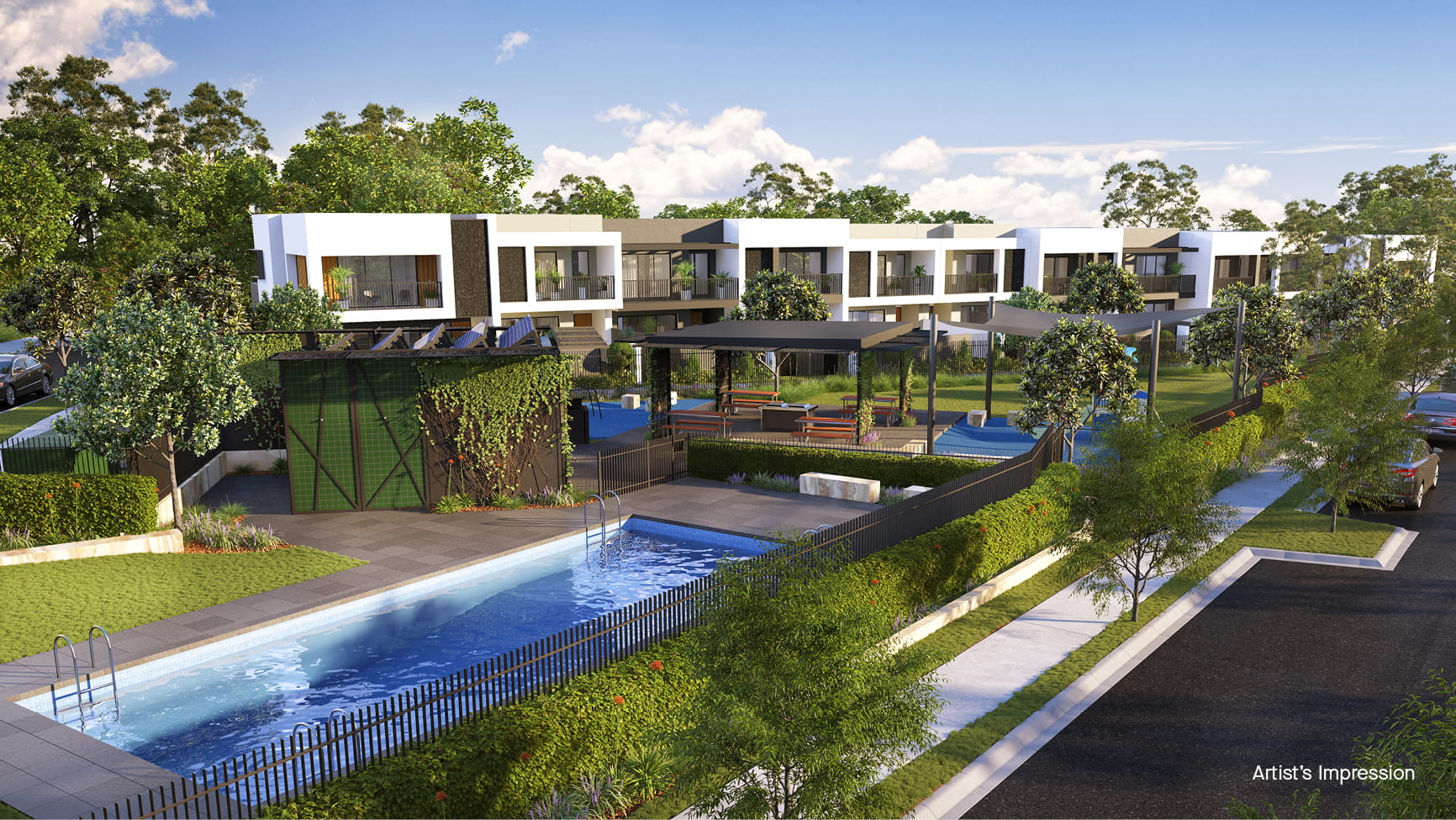 Artist's impression was produced prior to planning approval, statutory approval and commencement of construction and is subject to change. The information, image and artist's impression depicting interiors, exteriors and landscaping are intended only as a guide and are not to be relied on as a representative of the final product. Design of the Community Green is an indicative design and its materials, colours, shape, size and design are not finalised and subject to change.